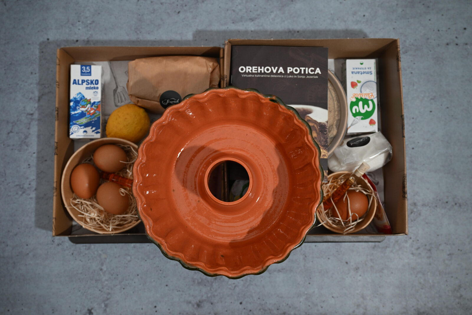 Za vas smo pripravili paket s kakovostnimi sestavinami, ki jih potrebujete za peko orehove potice, in preizkušen recept mame Sonje. Da boste s ponosom na mizo postavili sveže pečeno potico, z vami delimo tudi povezavo do videodelavnice, v kateri vam bo Sonja Jezeršek razkrila vse male in velike skrivnosti peke tradicionalne orehove potice.